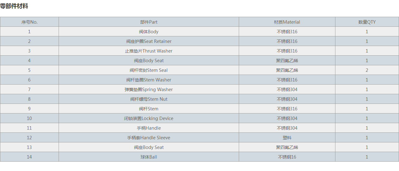 序號(hào)No. 部件Part 材質(zhì)Material 數(shù)量QTY