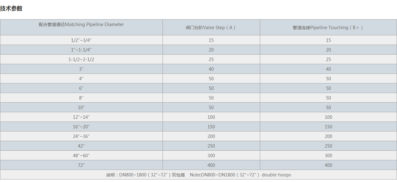 說明:DN800~1800(32″~72″)雙包箍    Note:DN800~DN1800(32″~72″) double hoops