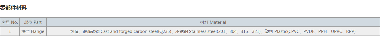 1 法蘭 Flange 鑄造、鍛造碳鋼 Cast and forged carbon steel(Q235)、不銹鋼 Stainless steel(201、304、316、321)、塑料 Plastic(CPVC、PVDF、PPH、UPVC、RPP)