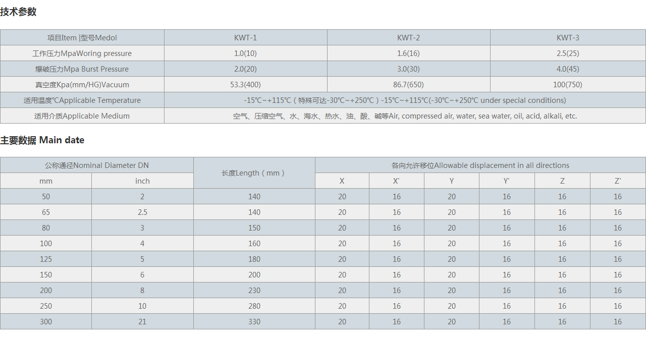 7.可曲繞橡膠接頭正常適用介質(zhì)是溫度0-60°C的普通水,特殊介質(zhì)如:油、酸堿、高溫及其他腐蝕性和質(zhì)地堅(jiān)硬的情況下,應(yīng)選用相對(duì)應(yīng)得特殊材料的橡膠接頭,不可盲目串用或通用。